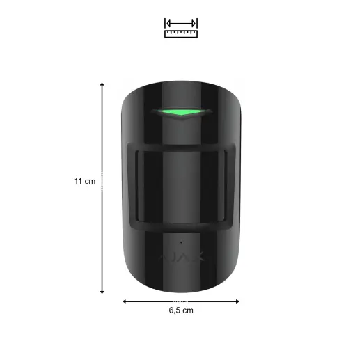 Vnitřní bezdrátový detektor, kombinovaný PIR detektor + rozbití skla, PET imunita, dosah 12 metrů, PET imunita, nadčasový design.