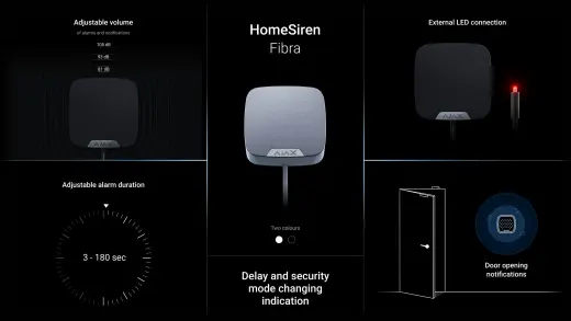 Drátová vnitřní siréna, výkon 81–105 dB, indikace stavu LED diodou, IP50, nadčasový design.