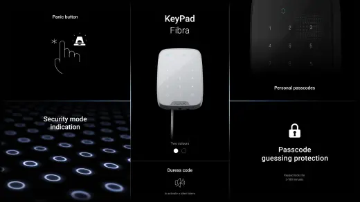 Drátová dotyková klávesnice, 15 tlačítek, signalizace stavu zab. systému, ochrana proti hádání kódu.