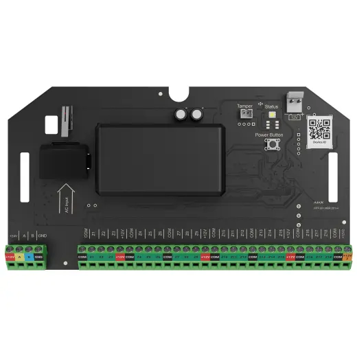 Drátový modul pro integraci drátových zařízení do systému Ajax, bez boxu, 18 vstupů, podpora 15 poplachových událostí, dosah mezi zařízením a detektory 400 metrů.