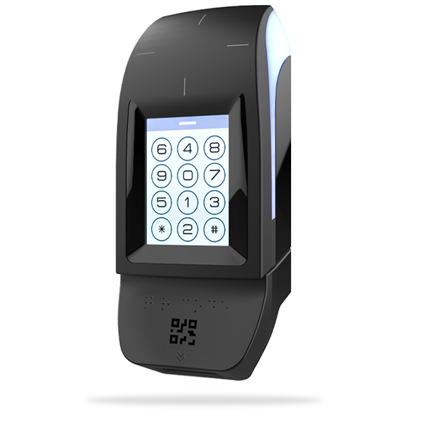 bezpečná RFID čtečka karet a čipů 13,56 MHz, čtení QR kódů, dotykový displej, podpora NFC a Bluetooth pro mobilní telefony, wiegand výstup