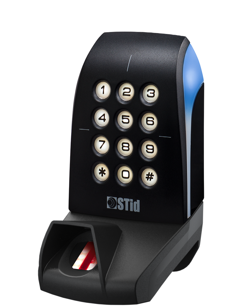 bezpečná RFID čtečka karet a čipů 13,56 MHz, čtečka otisku prstu, klávesnice, podpora NFC a Bluetooth pro mobilní telefony, wiegand výstup
