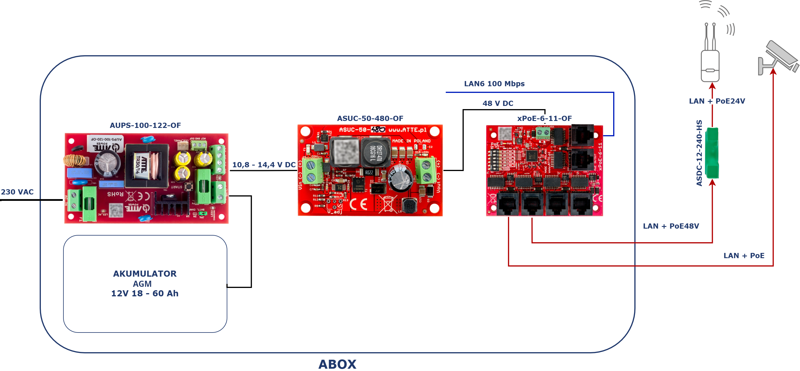 Příklad konfigurace vyrovnávací sady pro kameru a 24V PoE AP