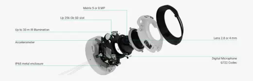 IP kamera s rozlišením 8 Mpx, ohniskem 2,8 mm, IR 30m, AI Analytics, microSD, H.265, WDR, HDR, IP65, PoE/PoE+, 12VDC.