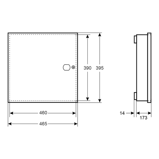 Rozměry: 460 x 390 x 173 [+/-2 mm] vzdálenost od povrchu: 14 mm