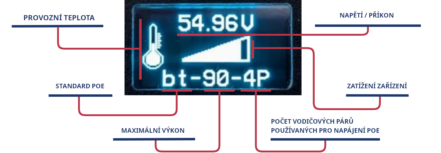 Pasivní PoE injektor 90W, 10/100/1000Mbps, displej