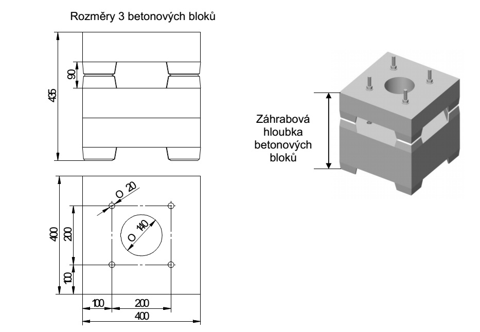 KIT pro instalaci sloupů Solaris, 2 betonové bloky a jedna ocelová patka, pro sloupy 2,5 a 3m