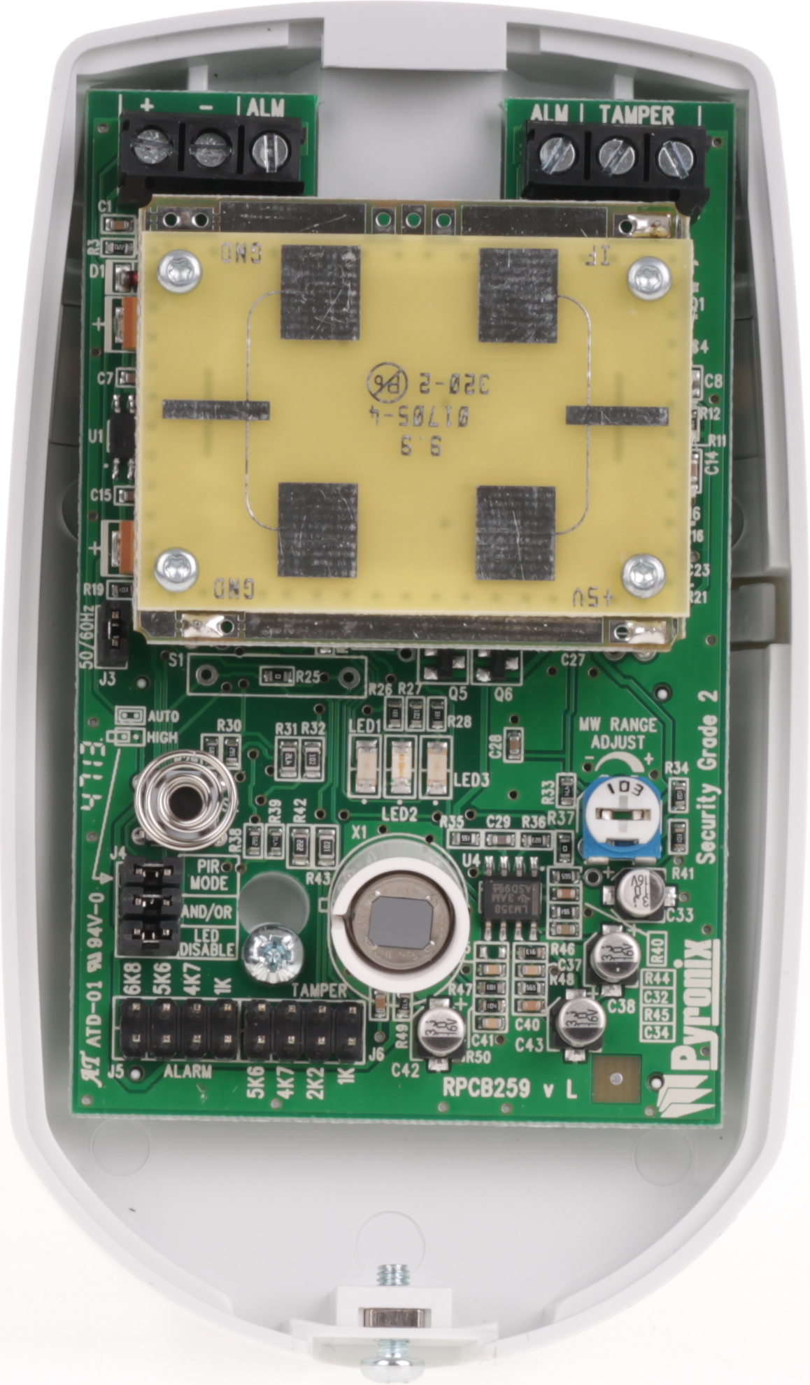 digitální DUAL PIR+MW, dosah 15m/85°, stojánek na stěnu a strop, vyvažovací rezistory