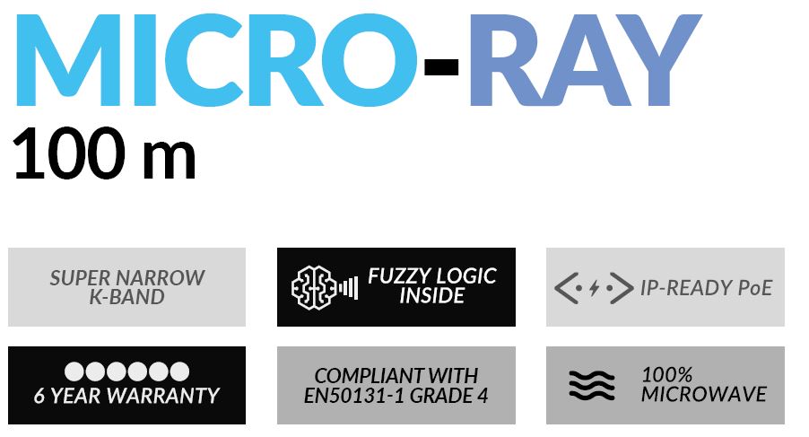 Sloupová MW bariéra MICRO-RAY s dosahem 100m, výškou sloupu 1 m,počet paprsků 1.