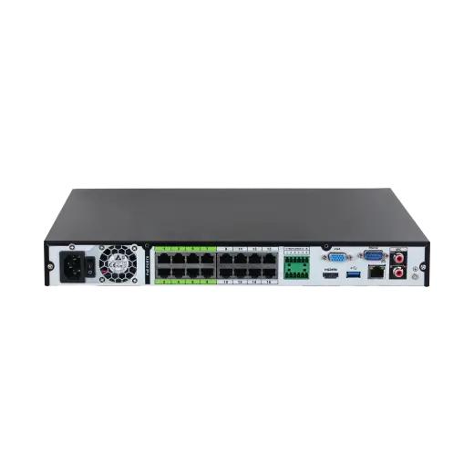 IP záznamové zařízení s možností připojení až 32 IP kamer do rozlišení 32Mpx. Maximální rychlost záznamu je 384 Mbps a data lze ukládat na 2 HDD SATA III o celkové kapacitě 32 TB (neobsahuje HDD). Mezi další funkce patří možnost inteligentního polohování PTZ kamer Dahua a snadný přístup z více aplikací, dále pak rozpoznání tváře, počítání osob, heatmap, 1x přední USB 2.0, 1x zadní USB 3.0. Rozšířená podpora chytrých analýz a filtru umělé inteligence možná pouze, pokud je na straně připojené kamery.