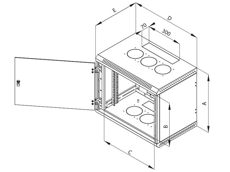 Nástěnný jednodílný datový rozvaděč v provedení 4U a rozměrech 600x395