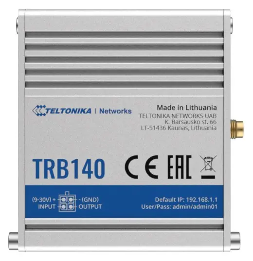 Průmyslový mobilní modem je vybaven technologií 4G/LTE (Cat 4) a je zpětně kompatibilní s 3G a 2G. Stejně jako ostatní produkty řady TRB poskytuje širokou škálu softwarových funkcí, jako je ovládání SMS, VPN, IPsec, Firewall a podpora FOTA. Je vybaven také softwarem založeným na OpenWRT, takže nabízí vysoký stupeň přizpůsobení. Tato brána je odolná, nabízí širokou škálu podporovaných napájecích napětí a je kompatibilní se systémem vzdálené správy (RMS) společnosti Teltonika Networks.Součástí balení je LTE anténa (SMA, 3 m), USB kabel a napájecí zdroj.Vlastnosti:Konektivita - 4G/LTE (Cat 4), 3G, 2G